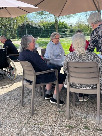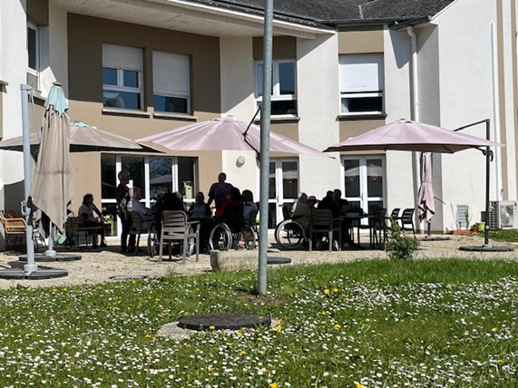 Grande nouveauté également : une nouvelle terrasse a été aménagée à l’avant de l’EHPAD, avec un accès direct depuis le bar. Cet espace a été pensé pour favoriser la convivialité : on peut désormais s’y installer facilement pour profiter du soleil printanier. C’est un lieu de passage et de rencontre, idéal pour les échanges intergénérationnels et les visites en toute simplicité.