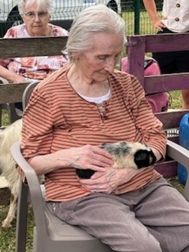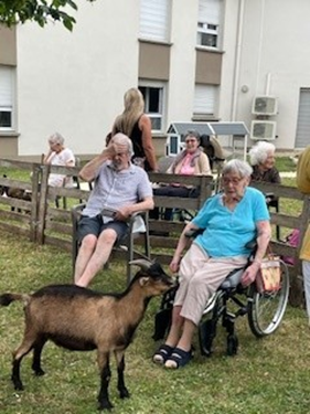 L’après-midi, nous avons eu le plaisir d’accueillir des résidents de l’EHPAD d’Illiers-Combray, venus partager avec nous cette belle expérience. Ces retrouvailles entre établissements ont permis de renforcer les liens, d’échanger autour de souvenirs et de profiter ensemble de la présence apaisante des animaux de La Bergerie.