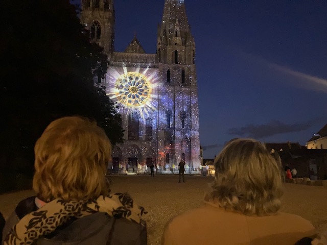 Nous avons d’abord profité des différents tableaux lumineux sur la façade de la cathédrale puis nous sommes repartis avec le minibus pour faire le tour de Chartres en lumières en passant par le Conseil général, le théâtre, la basse ville, la collégiale Saint-André et l’église Saint-Pierre. "Un vrai spectacle" pour Jacqueline D. "Le plaisir de revenir sur Chartres" pour Jocelyne, devant la cathédrale où elle s’est mariée…