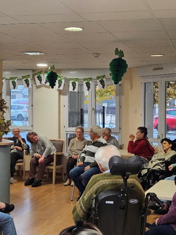 Dégustation de la cuvée 2024, mais également des plateaux de fromages et verrines fromagères préparés par notre équipe de restauration. Rassemblés autour du bar, chacun a eu l'occasion de partager son point de vue, certains le trouvant fruité, d’autres, « trop jeune ».